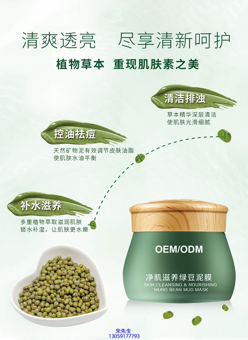 扬州市_泥膜深层清洁补水保湿绿豆泥膜 泥膜oem/OEM加工贴牌